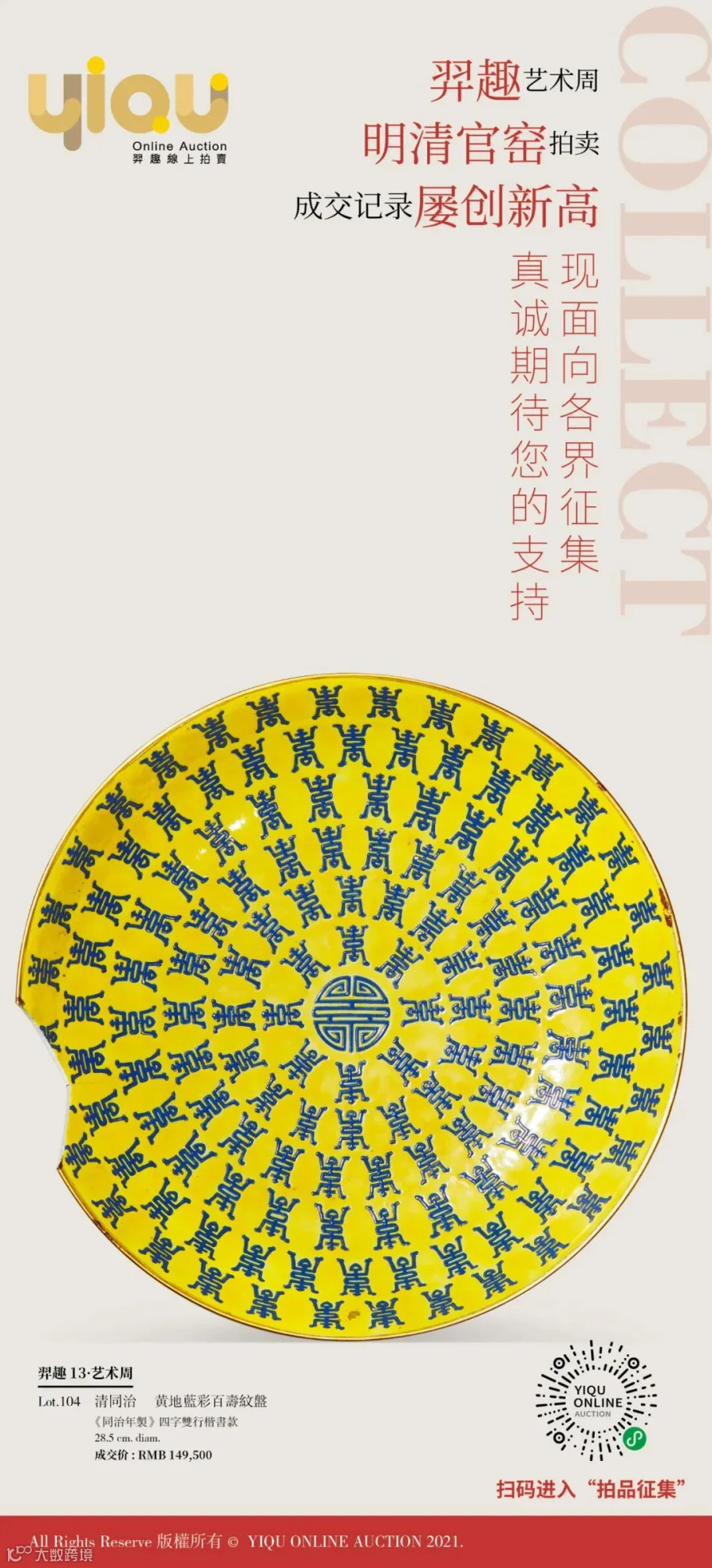 明清官窑瓷器的价格表现在羿趣屡创新高,羿趣从现在起正式面向各界进行征集,我们热诚期待您的支持,与我们共享艺术收藏之乐。