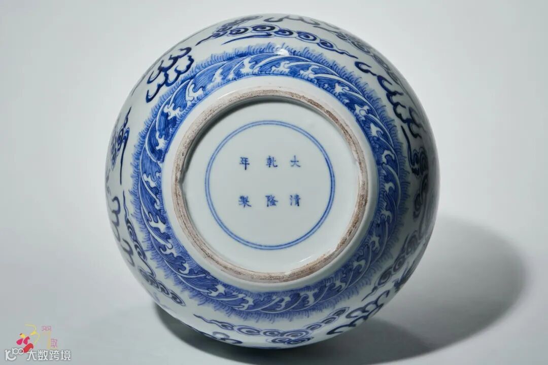 LOT320 民国 青花云龙海水纹天球瓶(底部图)