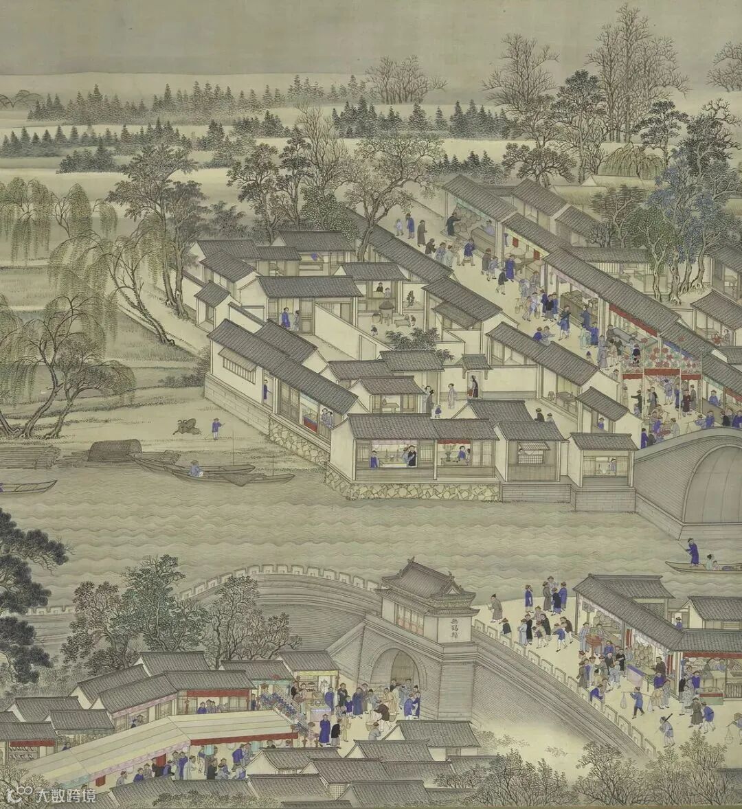 《康熙南巡图》第七卷无锡至苏州山水 无锡县 局部