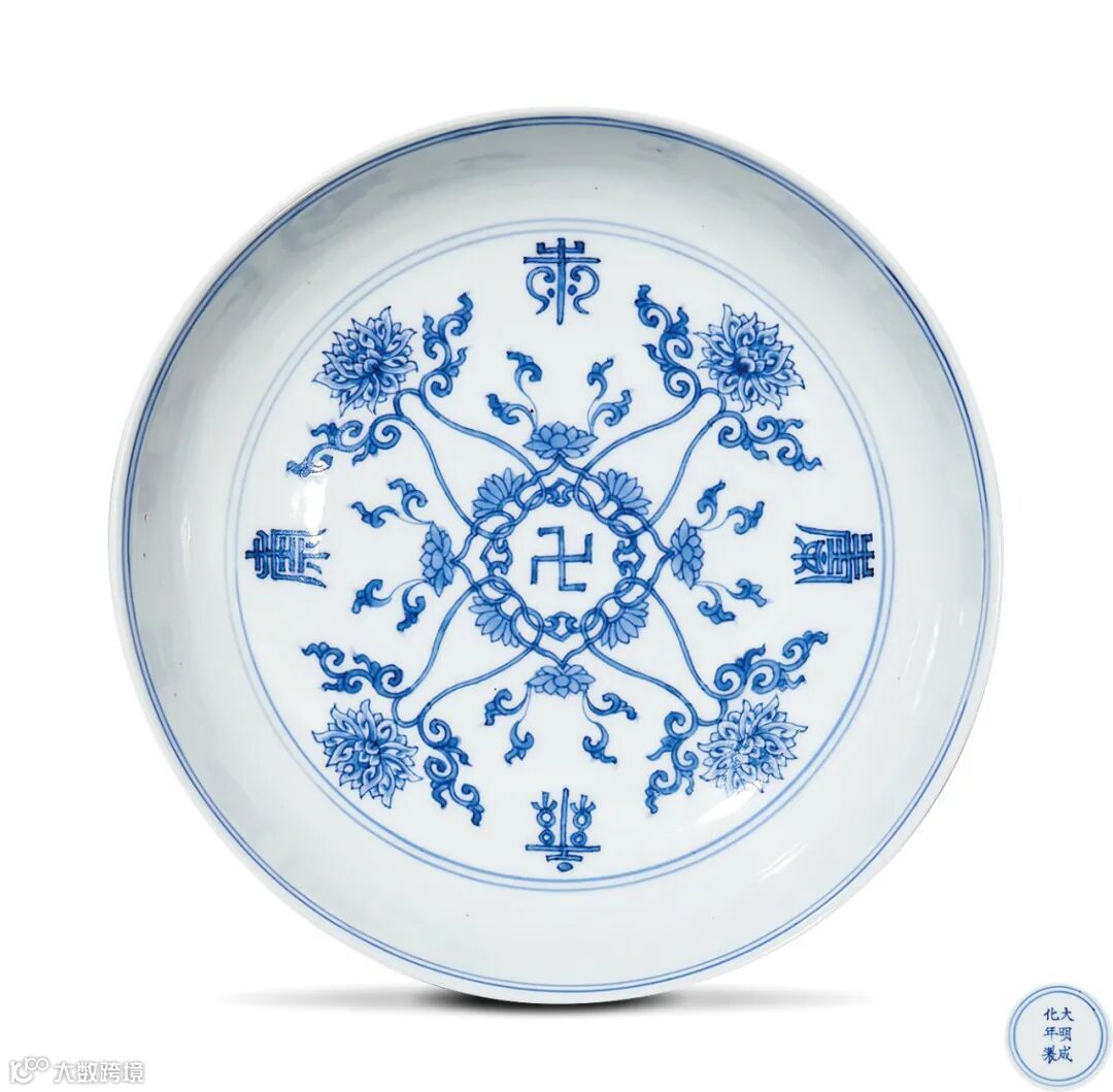 LOT160 清雍正 青花十字宝杵万寿纹盘
