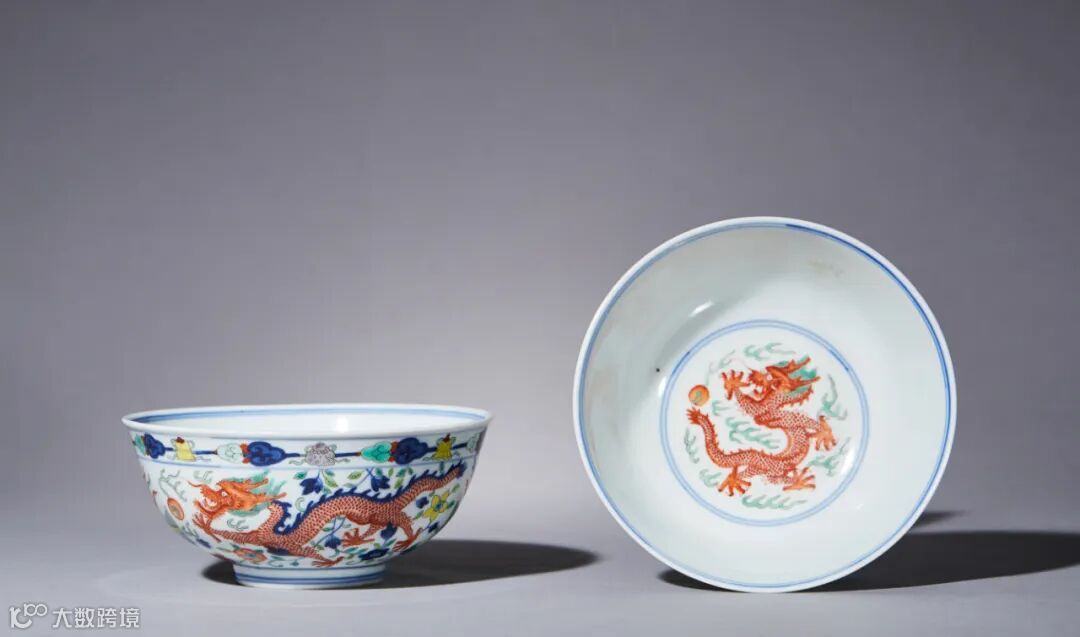 其中,五彩龙凤纹碗这一品种在历朝大运瓷器中始终存在,在不同朝代被称作“成窑五彩龙凤串花宫碗”或“五彩龙凤瓷碗”等等,现在我们按照习惯的命名方式,称为五彩龙凤纹碗。