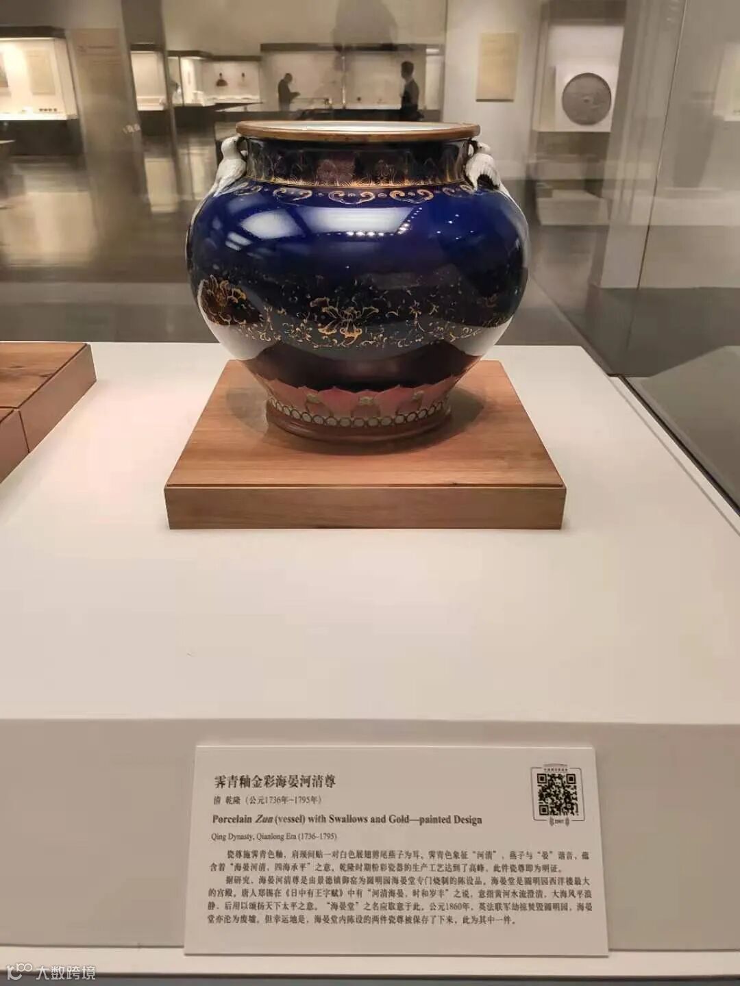 水波幽幽,莲花高洁,似与杏花竞相争春,各见绰致,空中两只春燕嬉戏空中,御风悠然,一只展翅向前,一只回眸等候。唐·郑锡《日中有王子赋》诗云:“河清海晏,时和岁丰。”唐薛逢《九日曲池游眺》中有云:“正当海晏河清日,便是修文偃武时”。海晏河清之象比喻天下太平,国泰民安。此件拍品将高宗皇帝“求贤若渴”及“四海升平”之渴求与吉愿融于一器,真实且写意的反映出皇帝对大清永固的内心祝祷与美好期许,亦展现出清盛世之风貌,极具匠心。