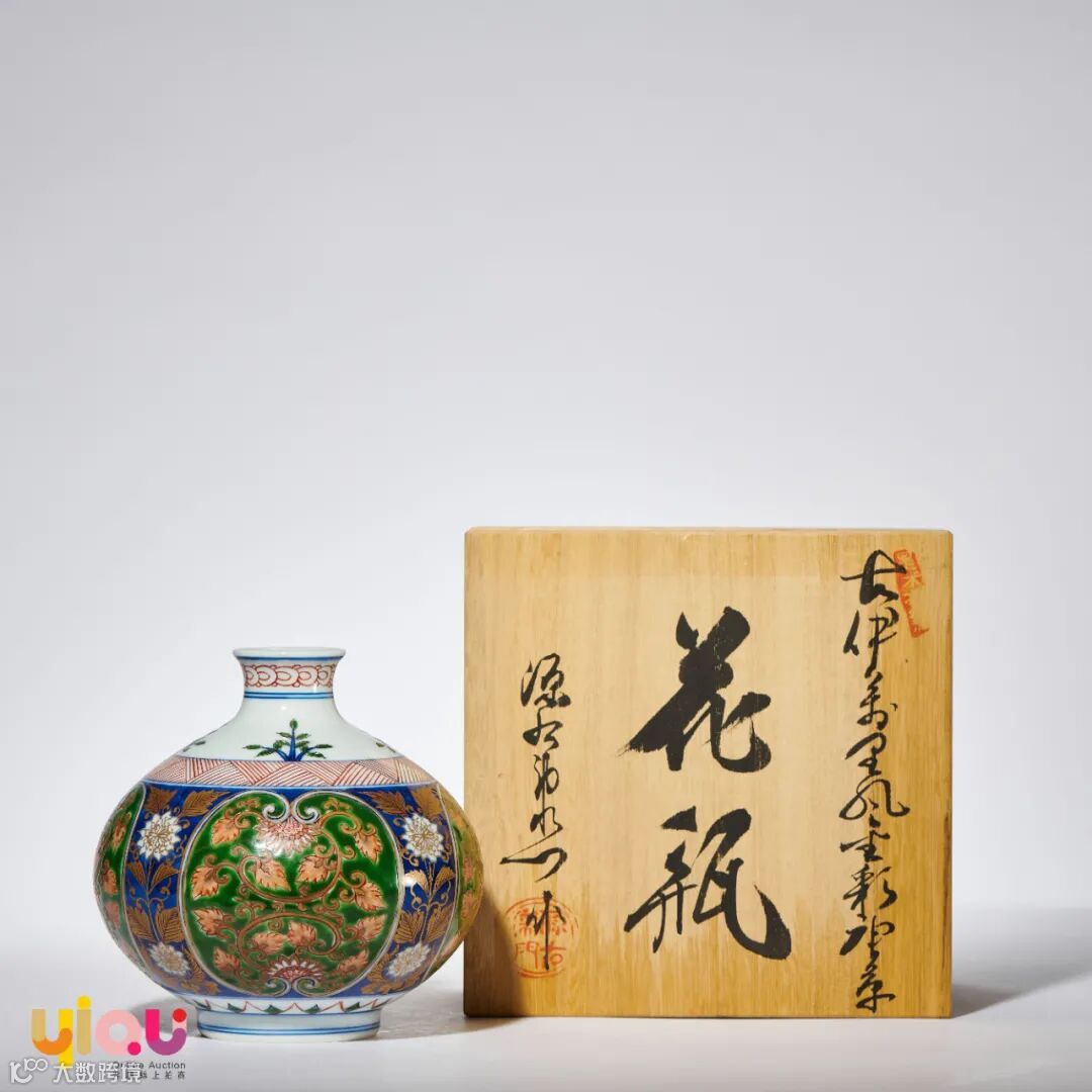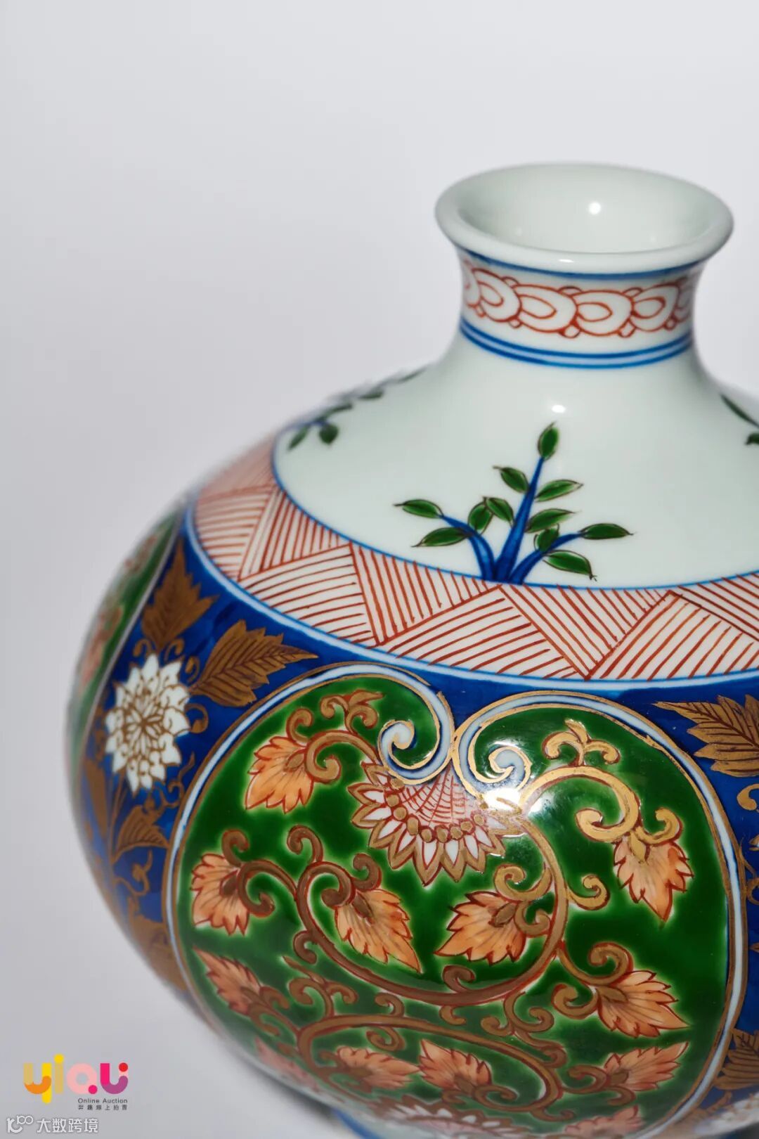 拍品为昭和时期,馆林源右卫门本人作品。此件古伊万里风唐草金彩花瓶,手工制作,胎体厚重,柴窑烧制。瓷质细腻温润,四面对应,禅意清幽。整器亦艳亦肃,典雅大气,画法是早期有田烧的传承图谱,刻画细致、精美、复杂,画功老道。