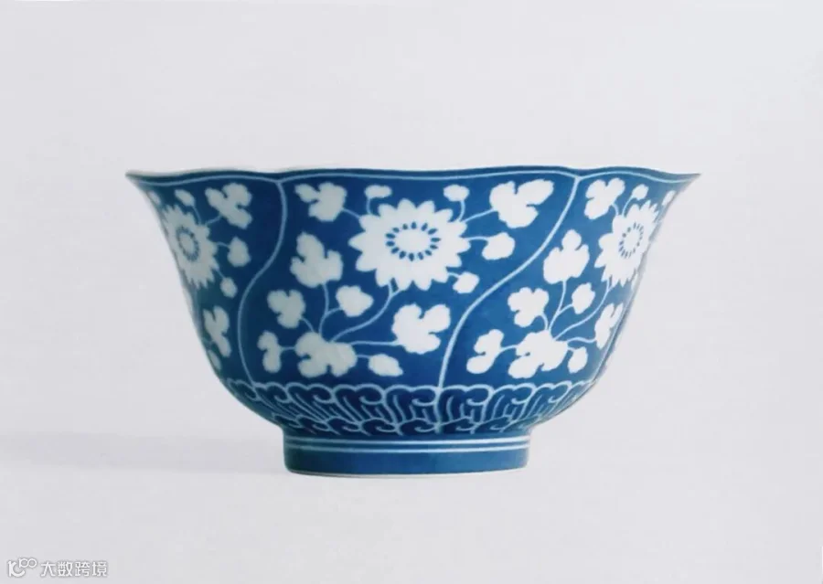 清雍正 洒蓝地留白折枝花卉纹葵口碗(玫茵堂藏)