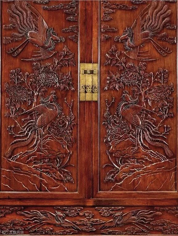 凤穿花图案,唐代已见,宋时开始大量使用。宋代的鸾凤穿牡丹图案,其形式多是两只鸾凤盘旋飞舞,一升一降,背景则是繁密的牡丹花。明清时期仍然沿用这一图式,纹饰则更加形象生动。