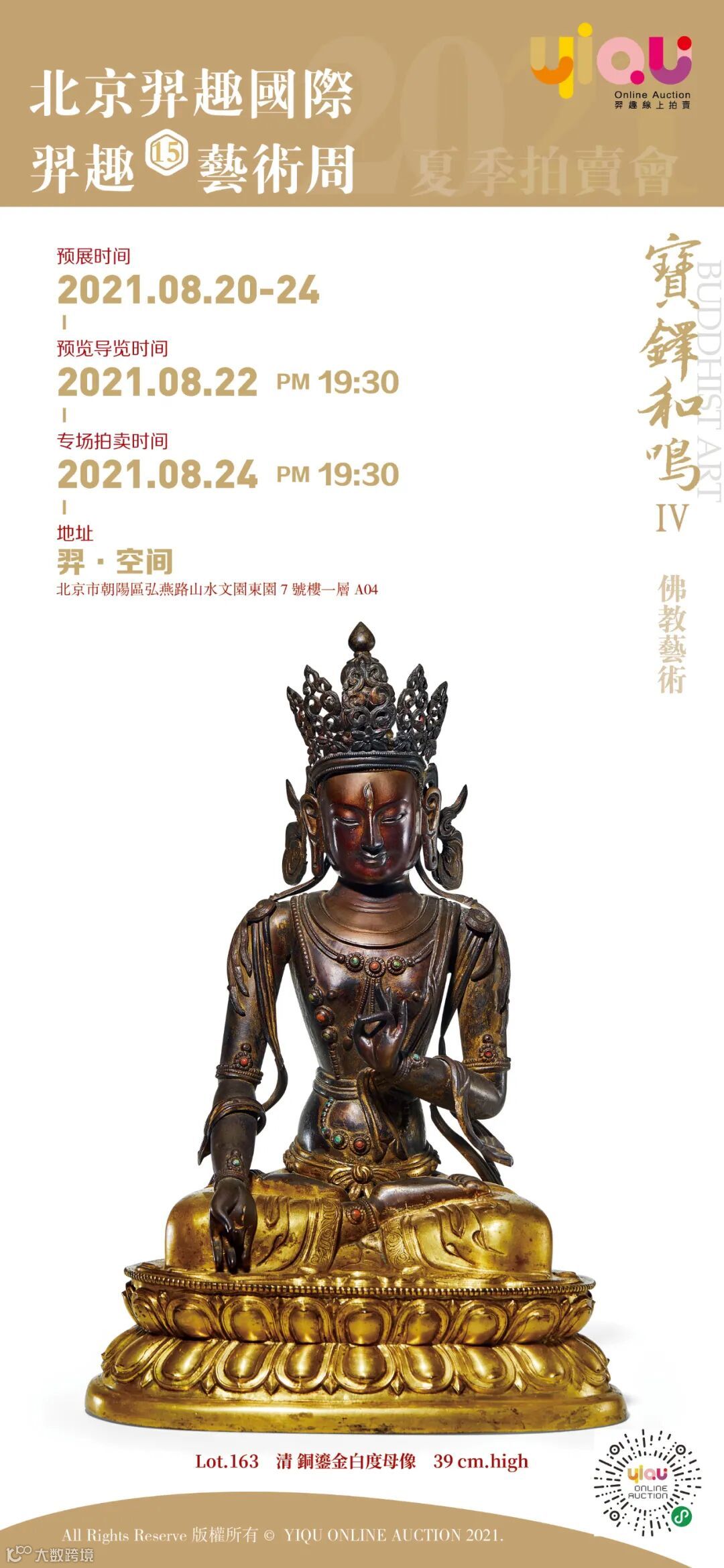 本次羿趣15艺术周“宝铎和鸣 Ⅳ—佛教艺术”专场,为广大藏家朋友臻选了40余件各类文物艺术品,涵盖了各个时期的金铜佛造像和铜器,各类珍玩精品,不一而足。其中,既有颇具赏玩趣味的LOT138清乾隆 铜局部鎏金嵌宝太平有象熏炉,亦有庄重精致的LOT141元 木雕漆金彩绘诸佛护经板,更有极为珍贵的LOT163清 铜鎏金白度母像一尊。整场拍品之珍稀程度、艺术品位不言而喻。
