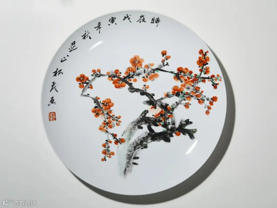 LOT5 张松茂 粉彩梅花诗纹盘