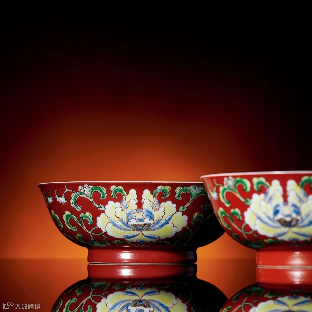 LOT808清雍正 御制珐琅彩五色西番花红地茶碗一对拍卖视频