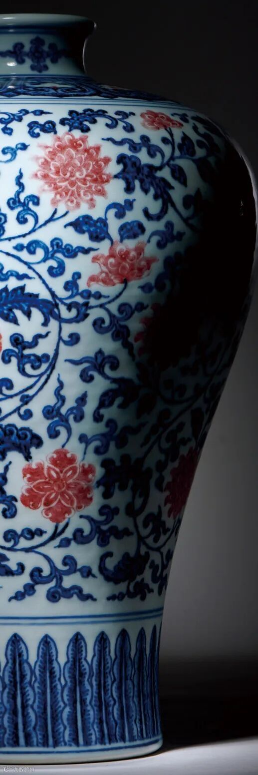 A EXCEPTIONALLY UNDERGLAZED BLUE AND RED 'INTERLOCKING FLOWER' VASE, MEIPING