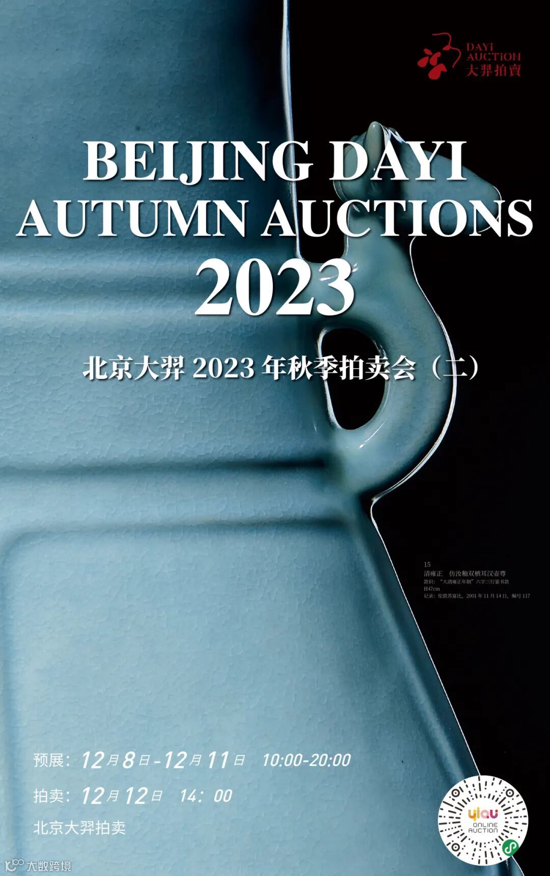 这两件拍品造型秀美,釉面蕴润,独具风采,目前正于北京大羿2023年秋季拍卖会(二)火热预展中。预展持续至12月11日,现场珍品荟萃,诚邀您莅临现场,畅谈艺术。