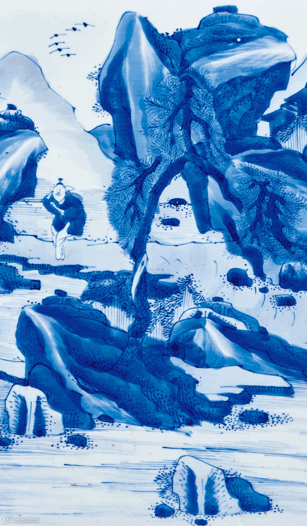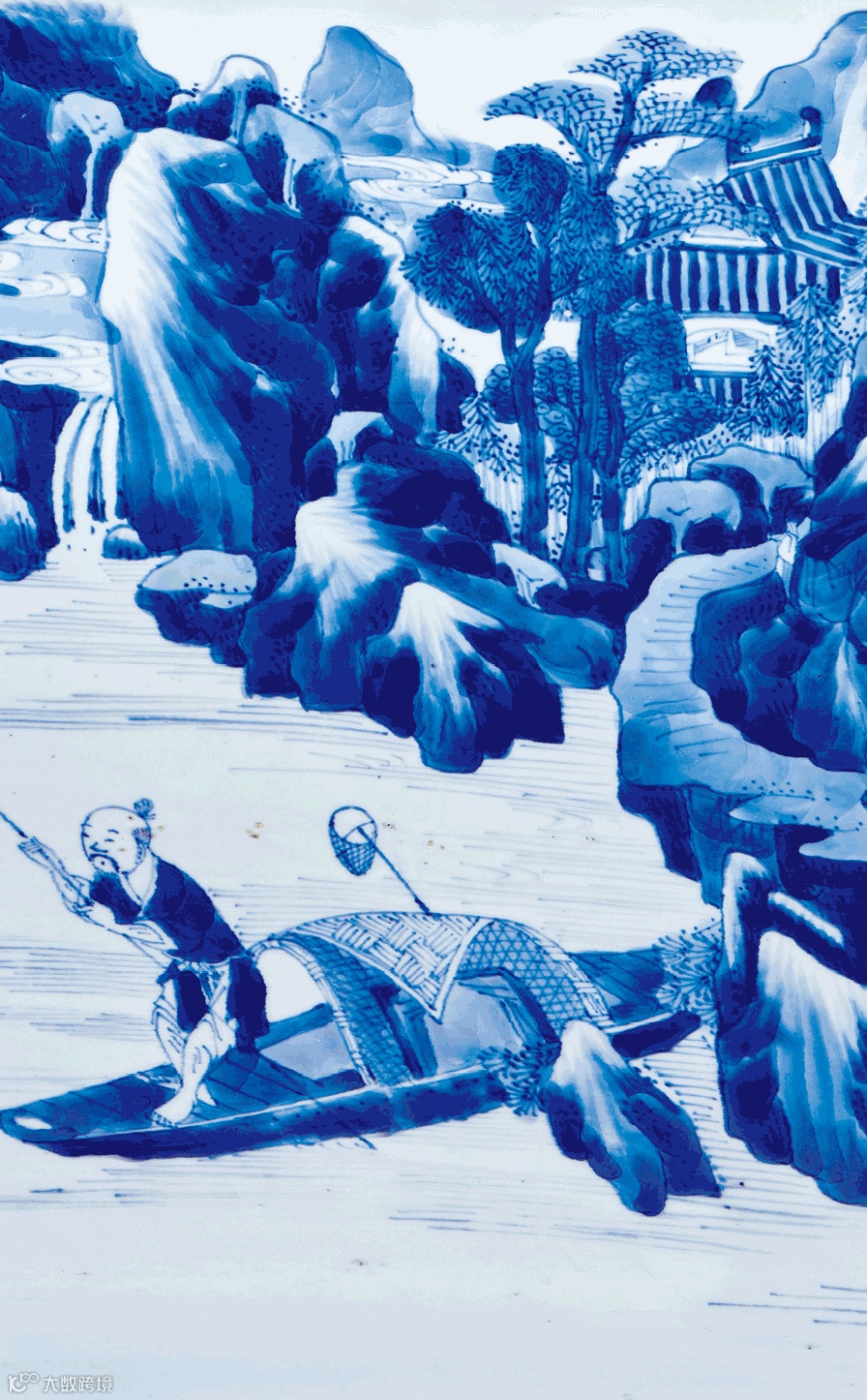 清康熙青花山水高士图观音瓶(展开图)