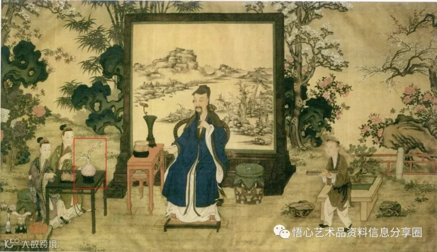 雍正及乾隆朝《清档》中有多条给“抱月瓶”配花的记录,并且从后世所绘《嘉庆帝汉装行乐图》中可以看到,在清宫日常生活中,此瓶既可作为典雅的陈设瓷器,亦属上品花器,供插花之用。