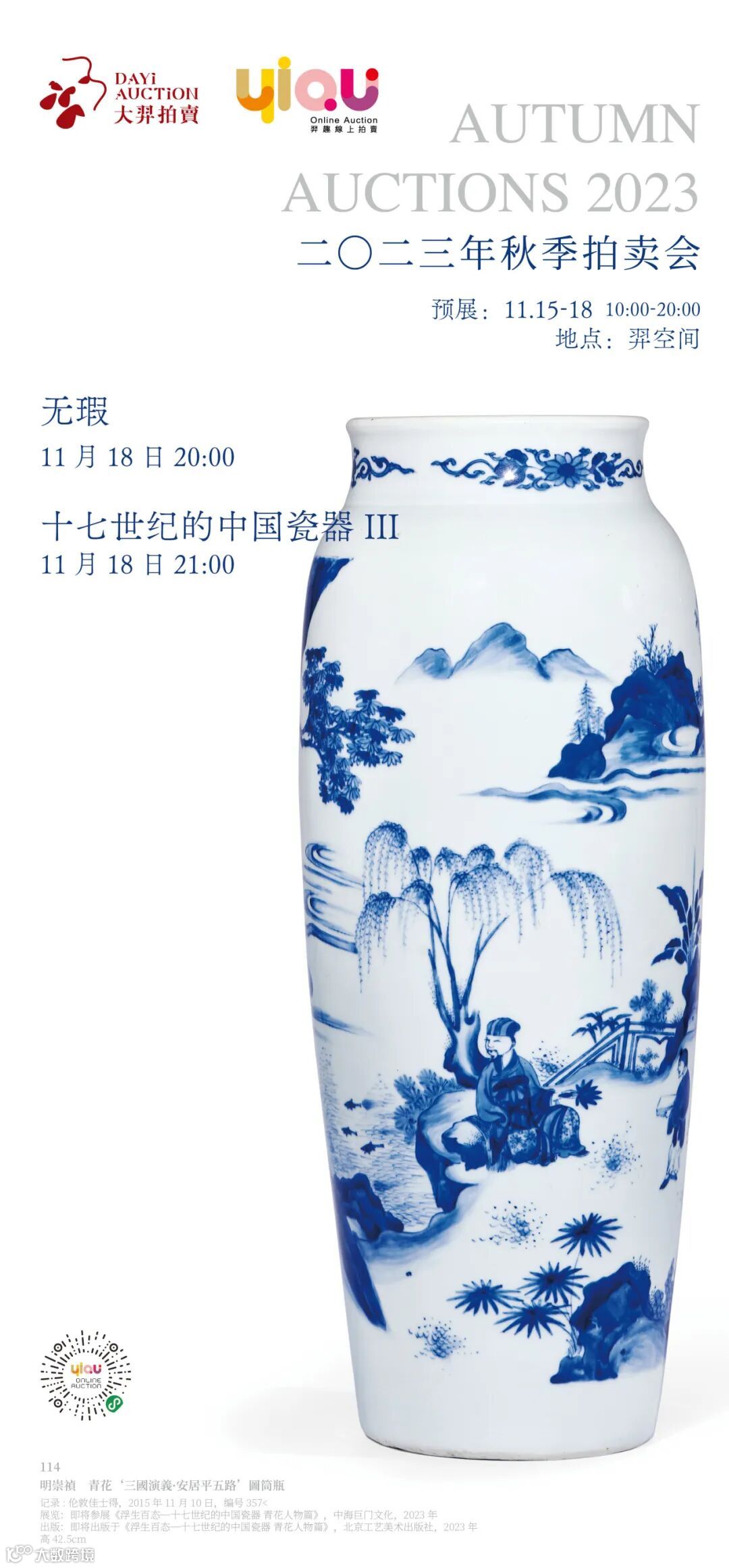 本亮相在秋拍「十七世纪的中国瓷器Ⅲ」专场中的拍品,古意盎然,诚然可期。相信各位藏友定能透过古器卧游山河,仰止高山,凝望古代侠者的浮生百态。