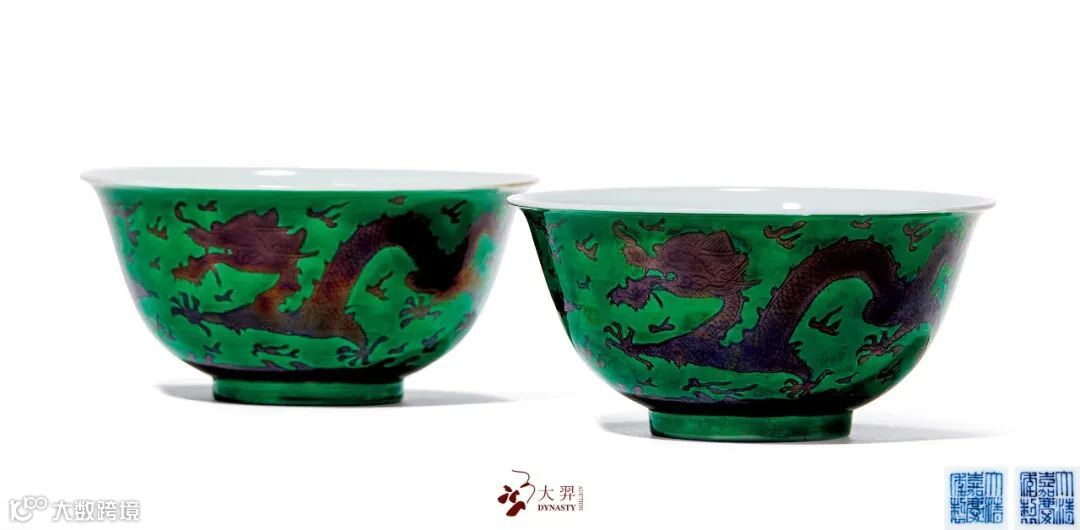 LOT825 清嘉庆 绿地紫彩云龙海水纹碗