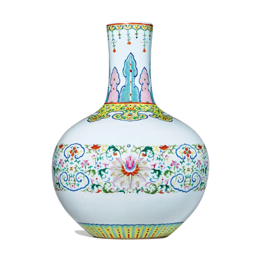 3、台北故宫博物院藏,清乾隆粉彩蟠桃纹天球瓶,馆藏编号:中瓷000034