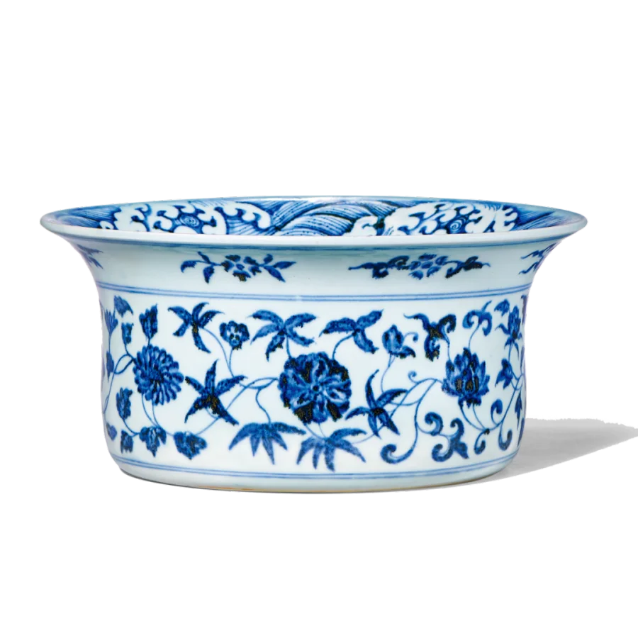 3、台北故宫博物院藏,明永乐青花折沿洗,馆藏编号:故瓷017664、故瓷 016863