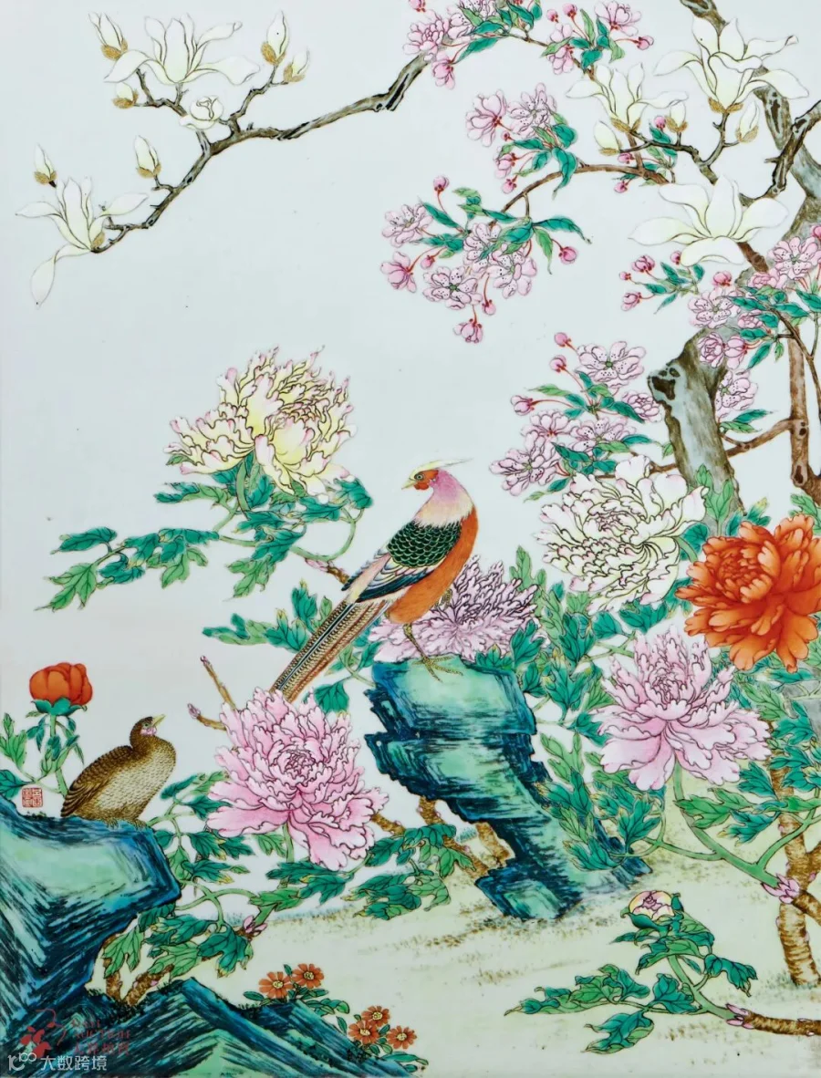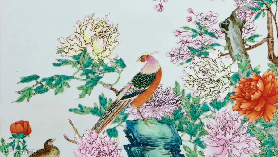 粉彩花鸟图瓷板