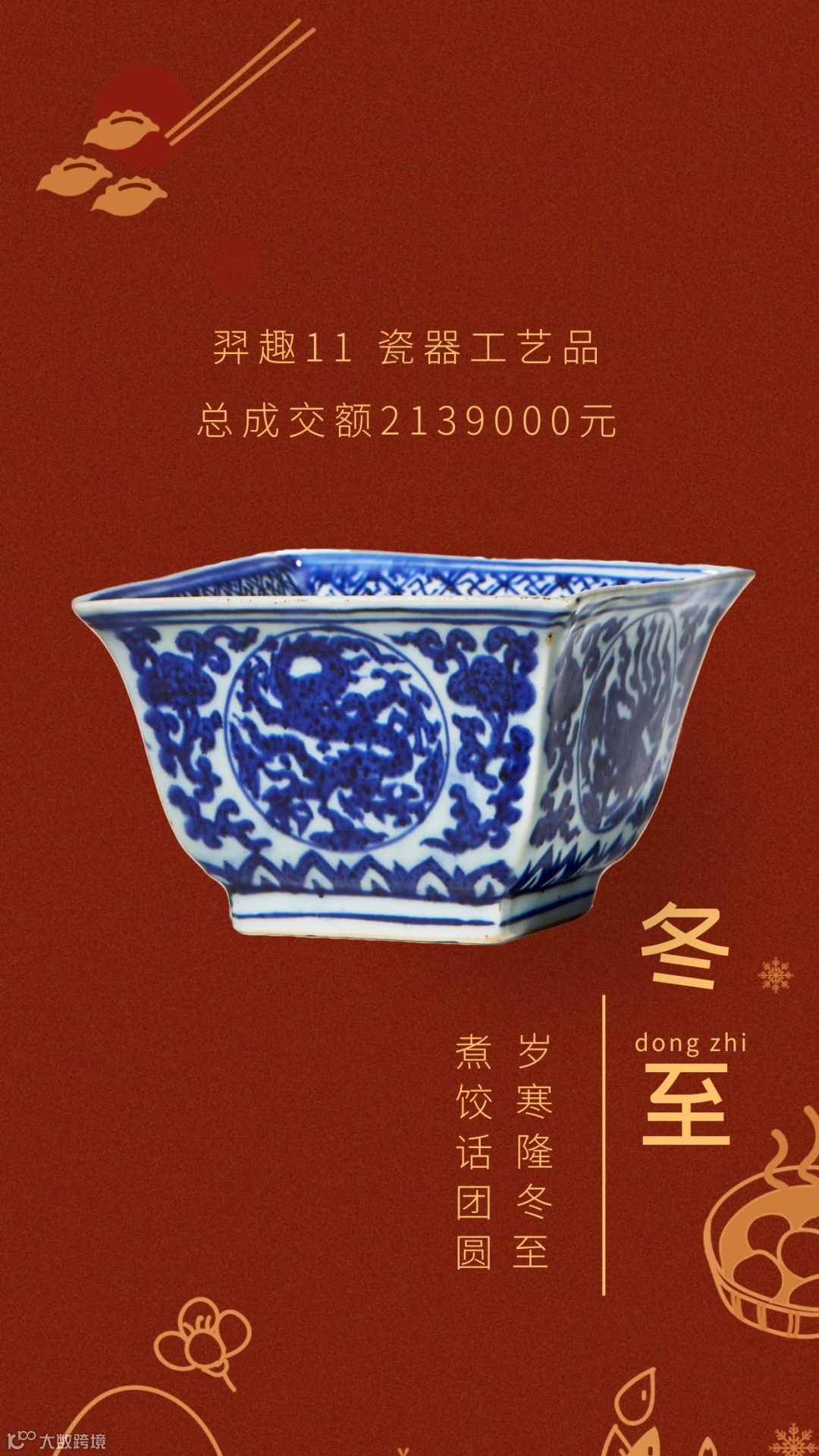 “羿趣”网络拍卖中,“瓷器工艺品”专场依旧有着无可撼动的市场地位。竞争激烈,买家释放出积极的竞买信号。本专场表现堪称惊艳,超出预计,取得了成交率90.59%的佳绩,最终收获成交额2,139,000元。LOT108 明嘉靖 青花缠枝花卉开光龙凤云鹤纹方斗杯在预展时,就获得各方的关注,经过激烈竞投后,最终以241,500元成交,成为本场拍卖最高价拍品。