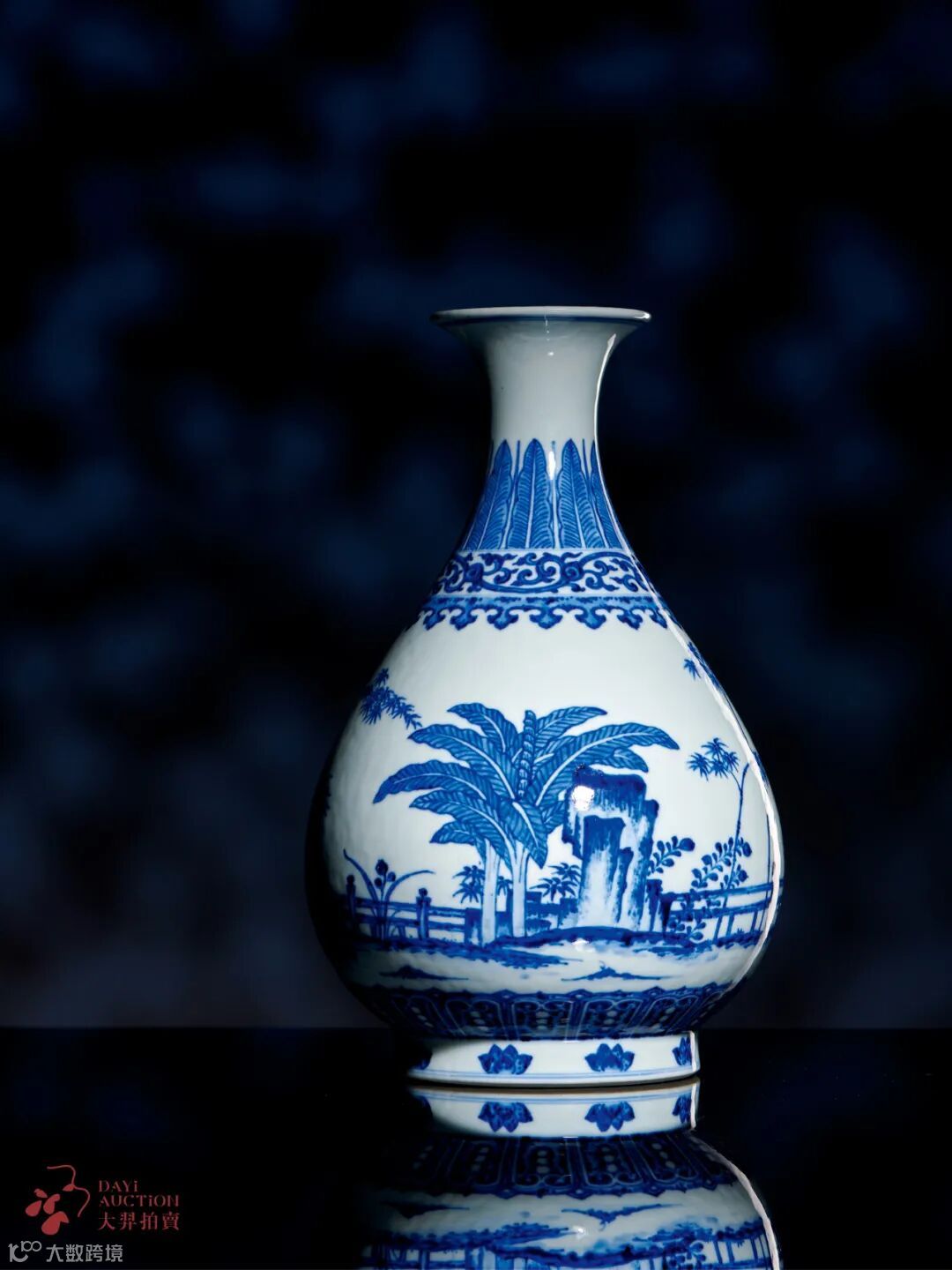 青花竹石芭蕉图玉壶春瓶一向作为明清两朝宫廷陈设品,拉胚、绘画都属上乘,其价值往往可以厚期。据乾隆六年《各作成做活计清档》中记录:「乾隆六年于十二月初十日司库白世秀将青花白地玉壶春一件……具配得木座……。」 又有乾隆十二年《清档》记载:「十四日七品首领萨木哈来说太监胡师姐交青花白地玉壶春一件……」。除此之外,在北京故宫博物院储秀宫中也有同类器型陈设,可以与清宫陈设档案中相关文字相应照。