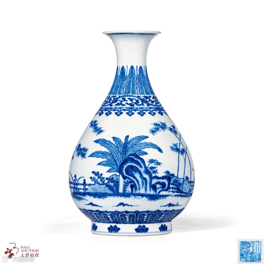 进入乾隆时期,瓷器的烧造水平已臻极致,玉壶春瓶的制作更趋完美,其胎质坚致细白,釉汁滋润明亮,器形相对于前,更显典雅秀丽,青花颜色浓艳,并以点染之法追求明初铁锈斑效果,尽现永宣遗风,其精细程度为历朝难以企及,此后历代官窑均以乾隆制品为标准范式,一直沿用至清末。查阅公私收藏,如本件拍品造型线条优美流畅, 胎质纯净细腻,纹饰清晰生动者,相可見《清康雍乾名瓷》,台北故宫博物院,1986年,页102,图72,和《清代瓷器赏鉴》,上海科学技术出版社,1994年,页135,图156,北京故宮亦藏有一列可做參考,詳見《故宫博物院藏明初青花瓷》上册,紫禁城出版社,2003年,页44、45,图18。
