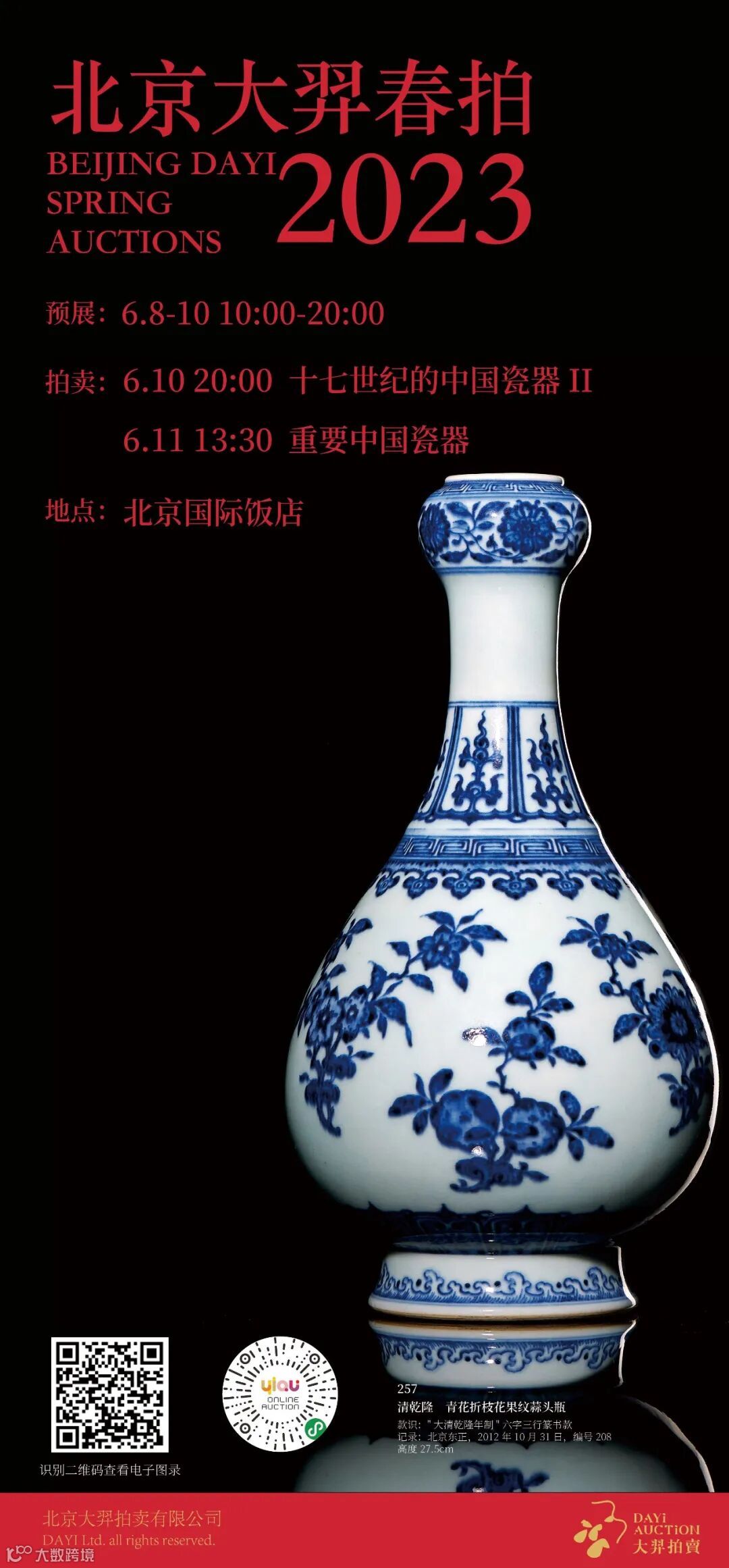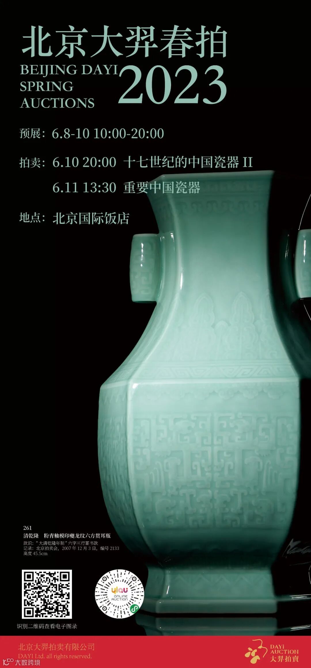 北京大羿2023年春拍于北京国际饭店主楼二层国际厅盛大开幕。站在光与影的预展现场,望向满厅的艺术展品,一切都极具意义。本次春拍从征集起,“羿”团队始终坚持挖掘拍品背后的文化底蕴,在制作图录上,更以全新的视觉效果,为各位呈现艺术的魅力以及大羿的学术底蕴。一路走来的足迹,有坚持更有创新。