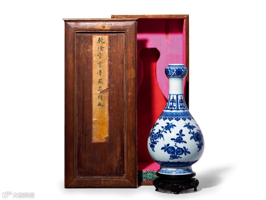 据《乾隆记事档》载,乾隆三年六月二十五日,乾隆帝就曾命太监高玉传旨将内府旧藏一批明代瓷器,交付景德镇御窑厂让唐英仿烧,其中就有“宣窑青花白地蒜头瓶”,此品种两岸故宫博物院及南京博物院均有收藏。