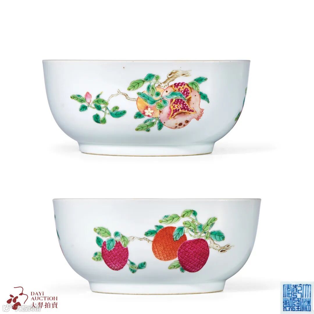 此拍品外壁以粉彩绘折枝荔枝、寿桃、石榴为饰,寓意甚好,笔触细致入微,色彩鲜艳柔丽,浓淡相宜,层次清晰而富有立体感,极大的展现了“三多纹”寓子孙科场得意、诸事顺遂的含义。