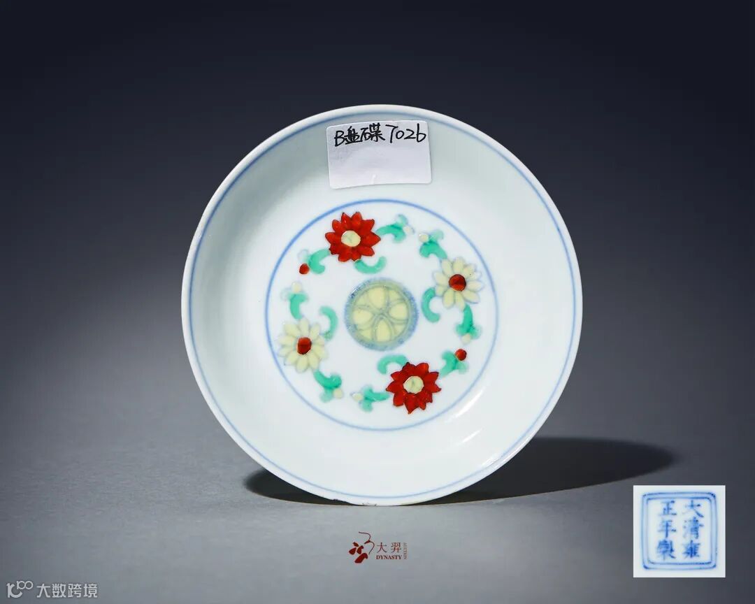 拍品撇口,浅腹,圈足,胎壁盈薄,器形规整小巧。小盘以斗彩绘各式花 卉,枝叶翻转。釉面莹润,黄彩色泽淡雅,绿彩鲜艳亮丽,红彩则尤为浓 重,颇具成化斗彩风韵。诚为雍正斗彩典雅精巧之典范。
