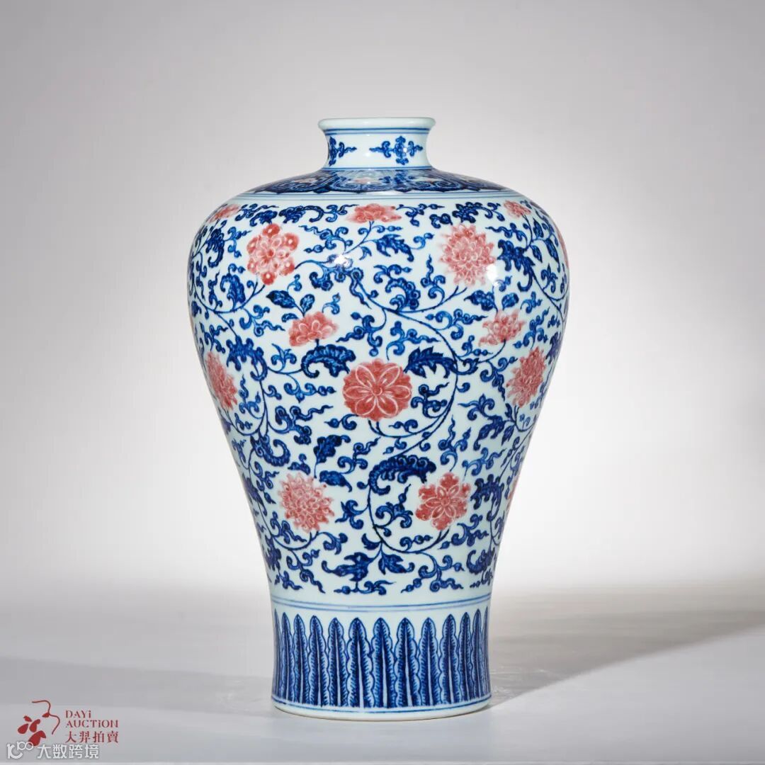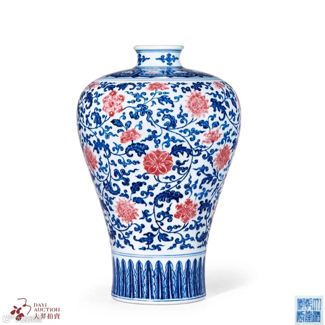 右:LOT820 清乾隆 青花釉里红缠枝花卉纹梅瓶
