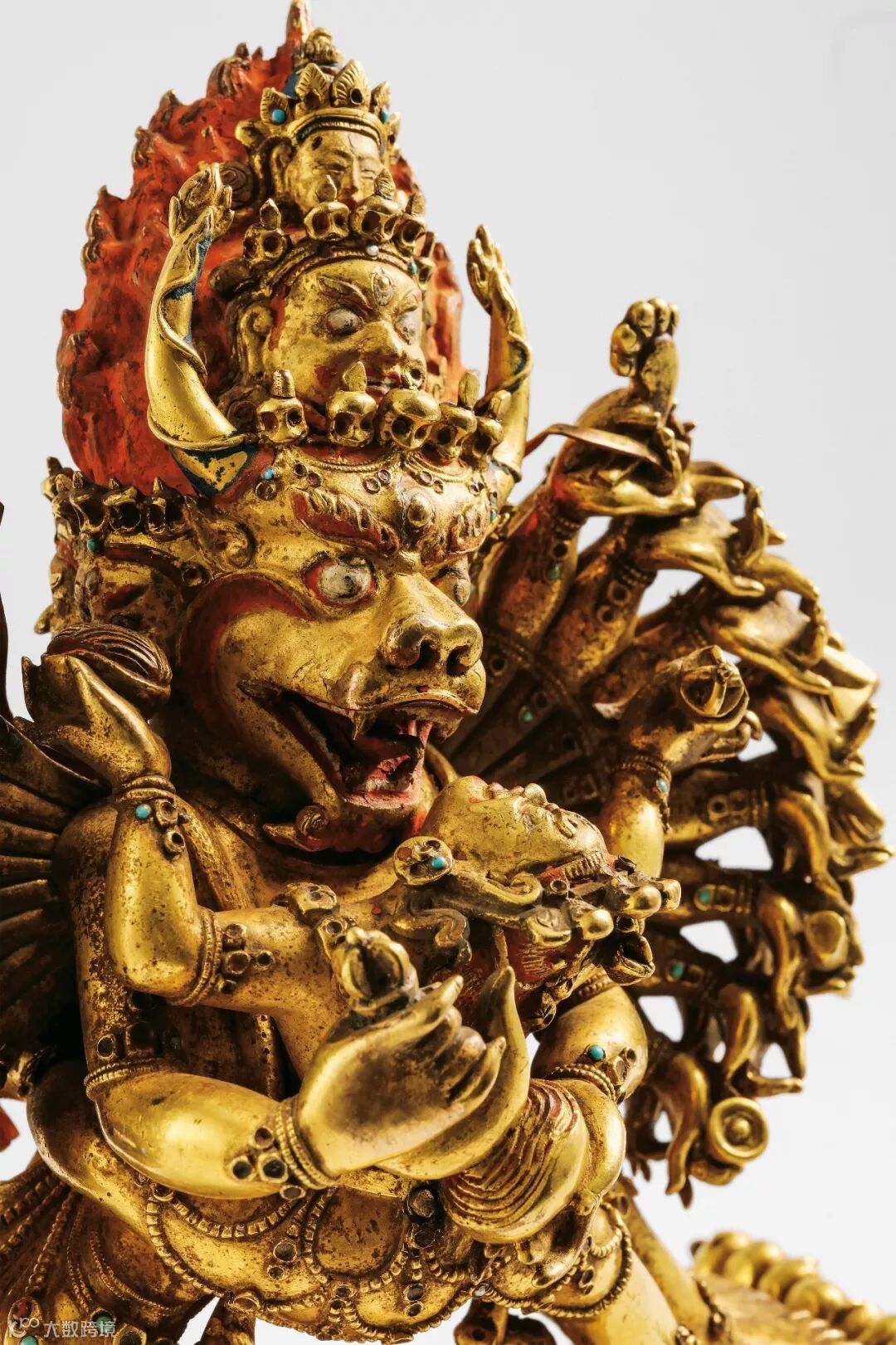 Lot 214 清乾隆 铜鎏金大威德金刚像 局部