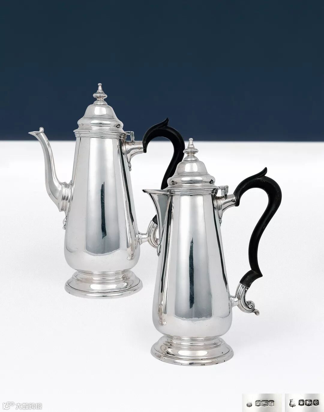 1922-1923年 英国925纯银牛奶及咖啡壶一对