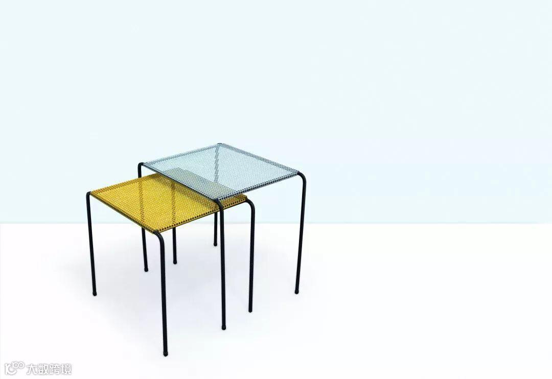 1955年制两张铁质网状Mathieu Mathegot风格矮桌