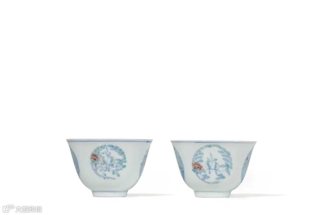 清雍正 斗彩仿成化团花纹杯一对