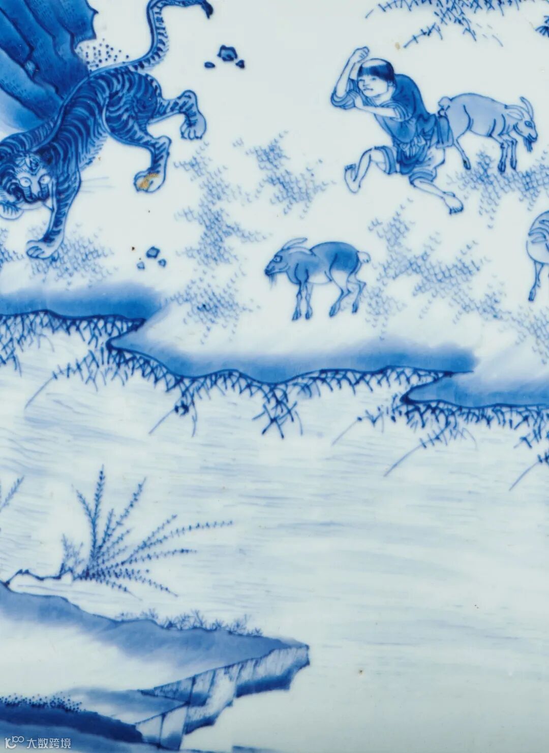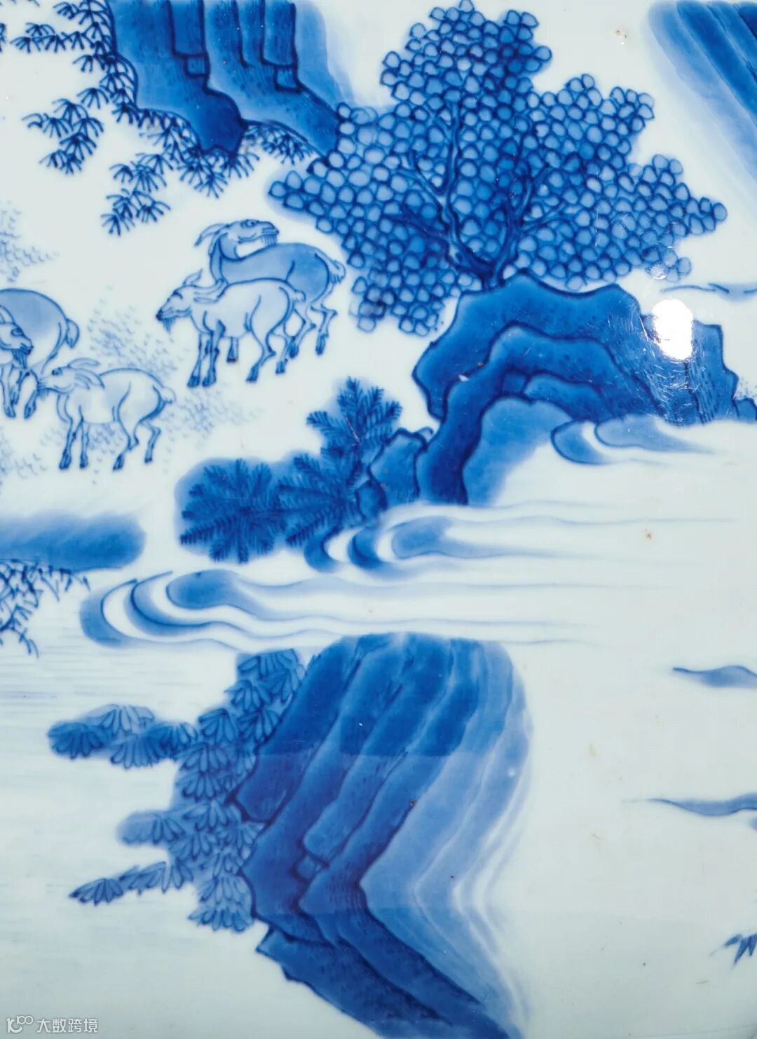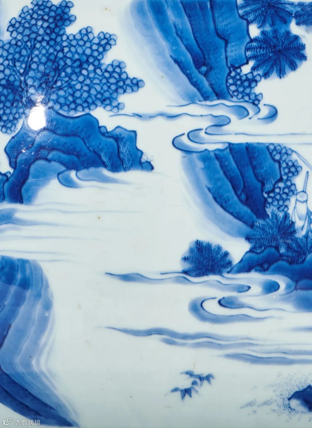 可见此拍品纹饰十分精细,青花发色纯正,醒目,有青翠之感,釉色莹润肥厚青白,胎体坚实。全器整体用笔流畅,画面布局层次清晰,笔触皴染得宜,苍劲中见秀润,浑厚中显劲峭,工艺精湛,是崇祯时期较为经典的一件艺术精品。