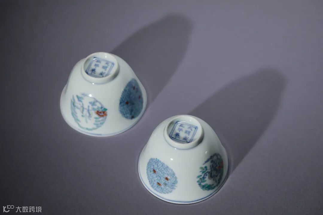 LOT10 清雍正 斗彩仿成化团花纹杯一对