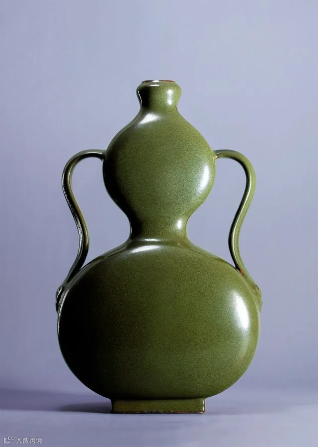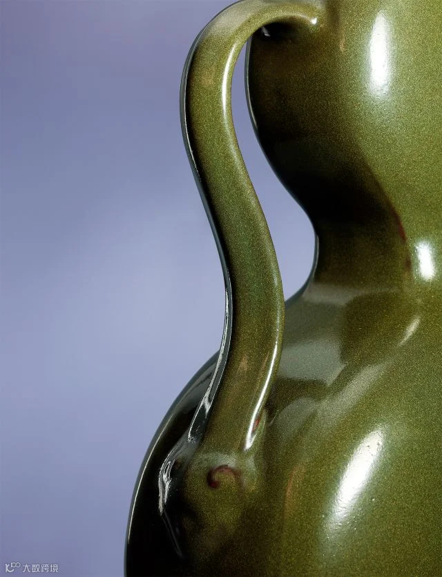 通体施茶叶末釉,圈足施铁褐色护胎釉,具有乾隆时期茶叶末釉的典型特征。本品釉色纯正匀净,器形典雅大方,又葫芦为长寿象征,并谐音『福禄』,绶带如意耳亦昭示吉祥,秀雅中蕴美好寓意,诚为皇家青睐之物。《唐英全集》记载:『乾隆三年五月(江西)初六日司库刘山催总白世秀来说,太监高玉交……厂官釉葫芦马卦瓶一件』,《清代官窑瓷器史•四》亦有关于厂官釉葫芦马挂瓶之记载。