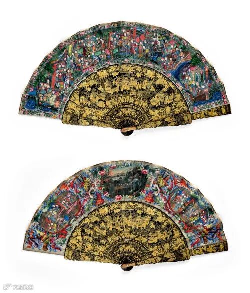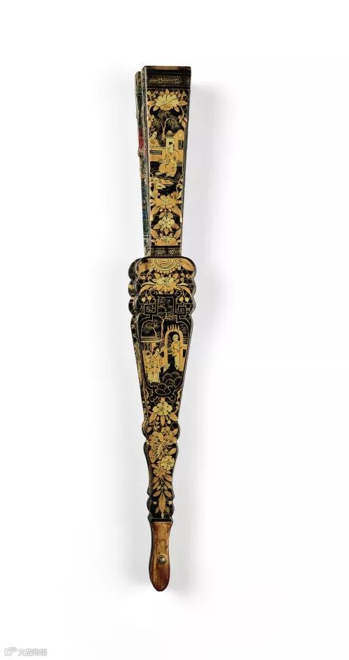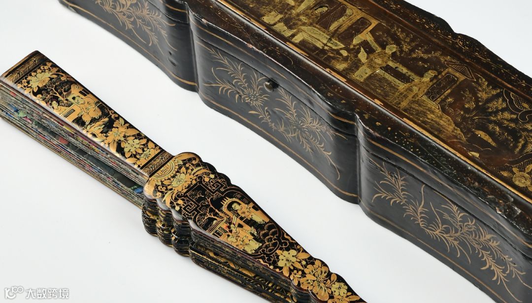 外销扇之上华丽的黑漆描金与彩绘装饰,亦夺人心神,深得欧洲上流社会的喜爱。