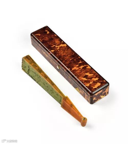 十九世纪初 意大利金色玳瑁及织绣折扇 玳瑁皮盒