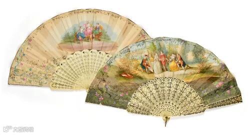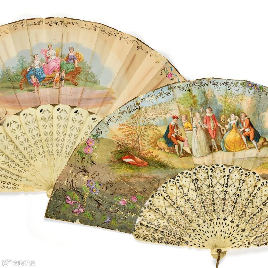 “浪漫时代”之折扇善于运用复杂的镂空设计,扇面绘以颇受欢迎的歌剧场景、重要人物和历史事件,也常展现骑士精神主题与吟游诗人风格等。
