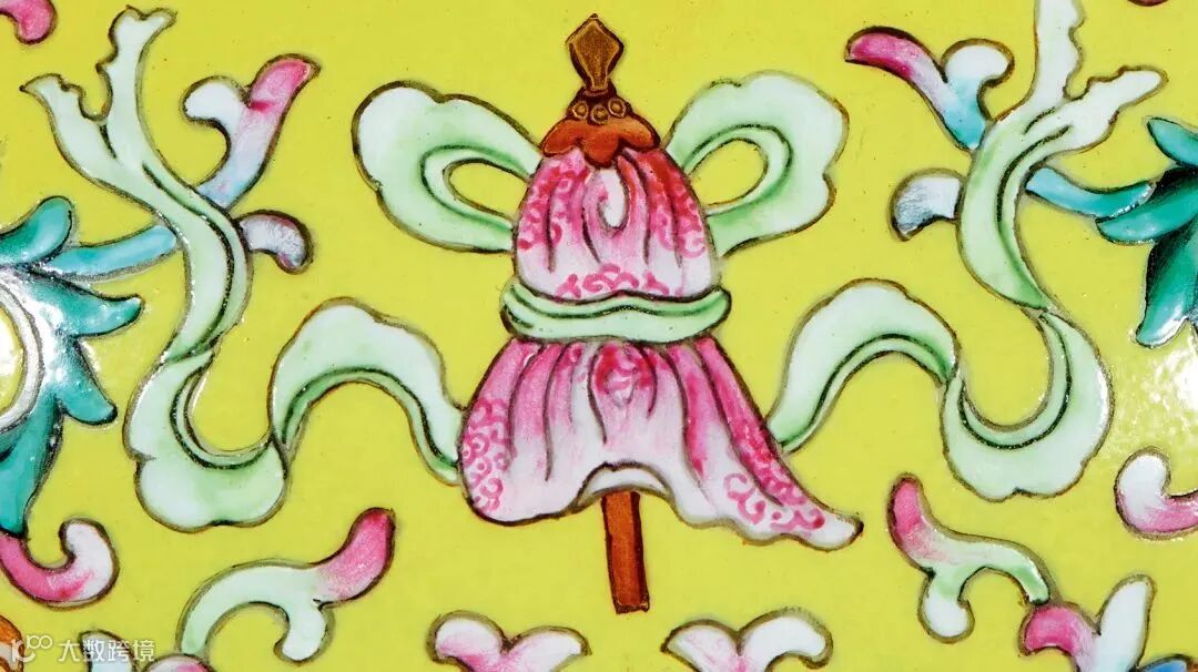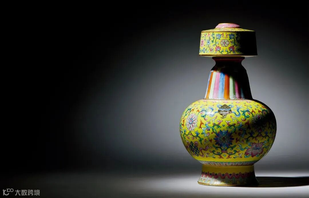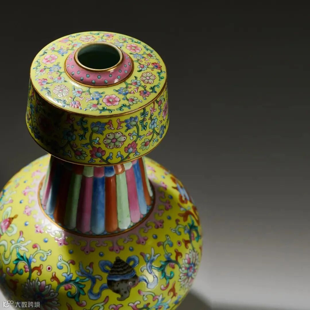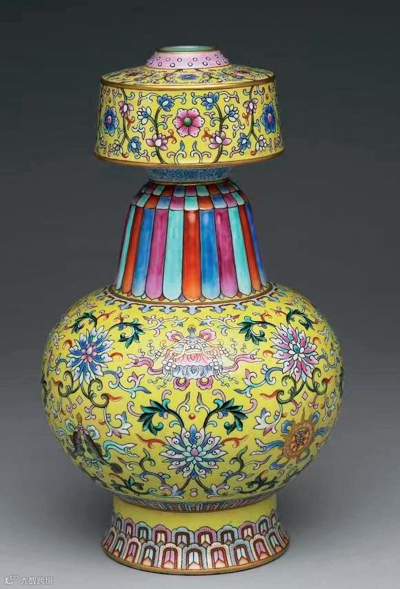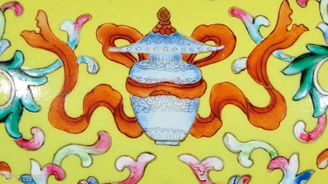 LOT842 清乾隆 御制黄地洋彩莲托八吉祥纹贲巴瓶物是一件将西藏地区传统造型与宫廷御瓷完美结合的器物,更是汉藏文化融合的历史见证。其秀美的造型、精细的绘工、协调的色彩与精美的纹饰浑然一体,体现出西藏地区传统造型与内地悠久的陶瓷烧造工艺高度完美的融合。它不仅能带给我们视觉上的享受,也展示了中国历史文化内涵的魅力所在。