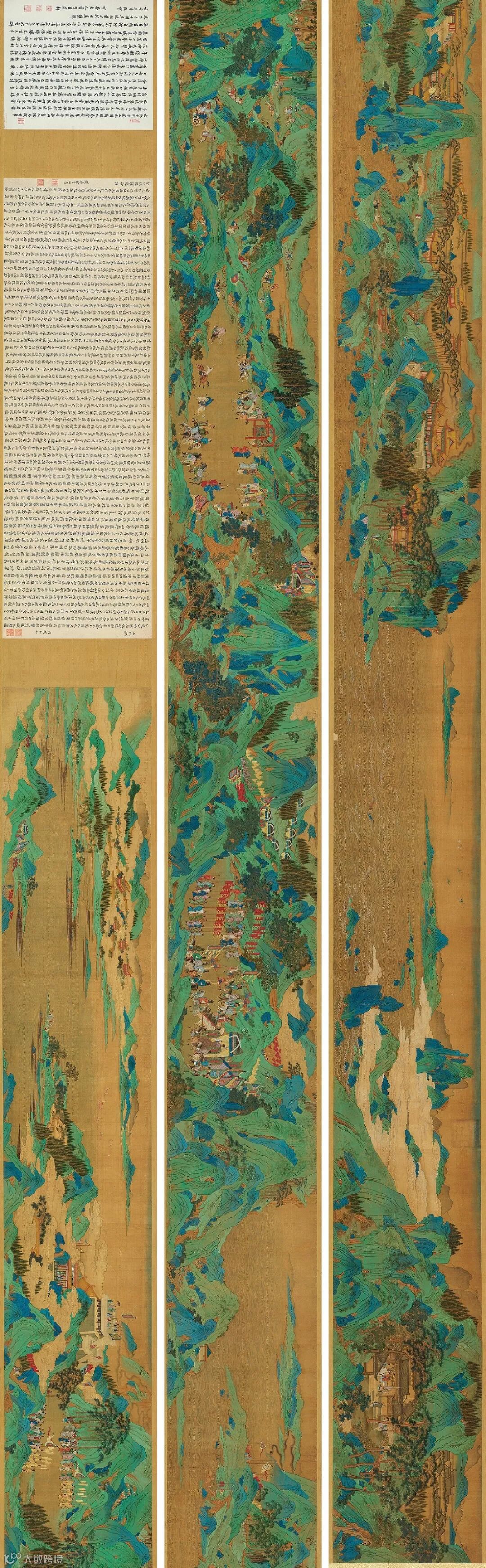 此件仇英《子虚上林图》取材于司马相如《上林赋》,是仇英青绿山水典型风格的作品。