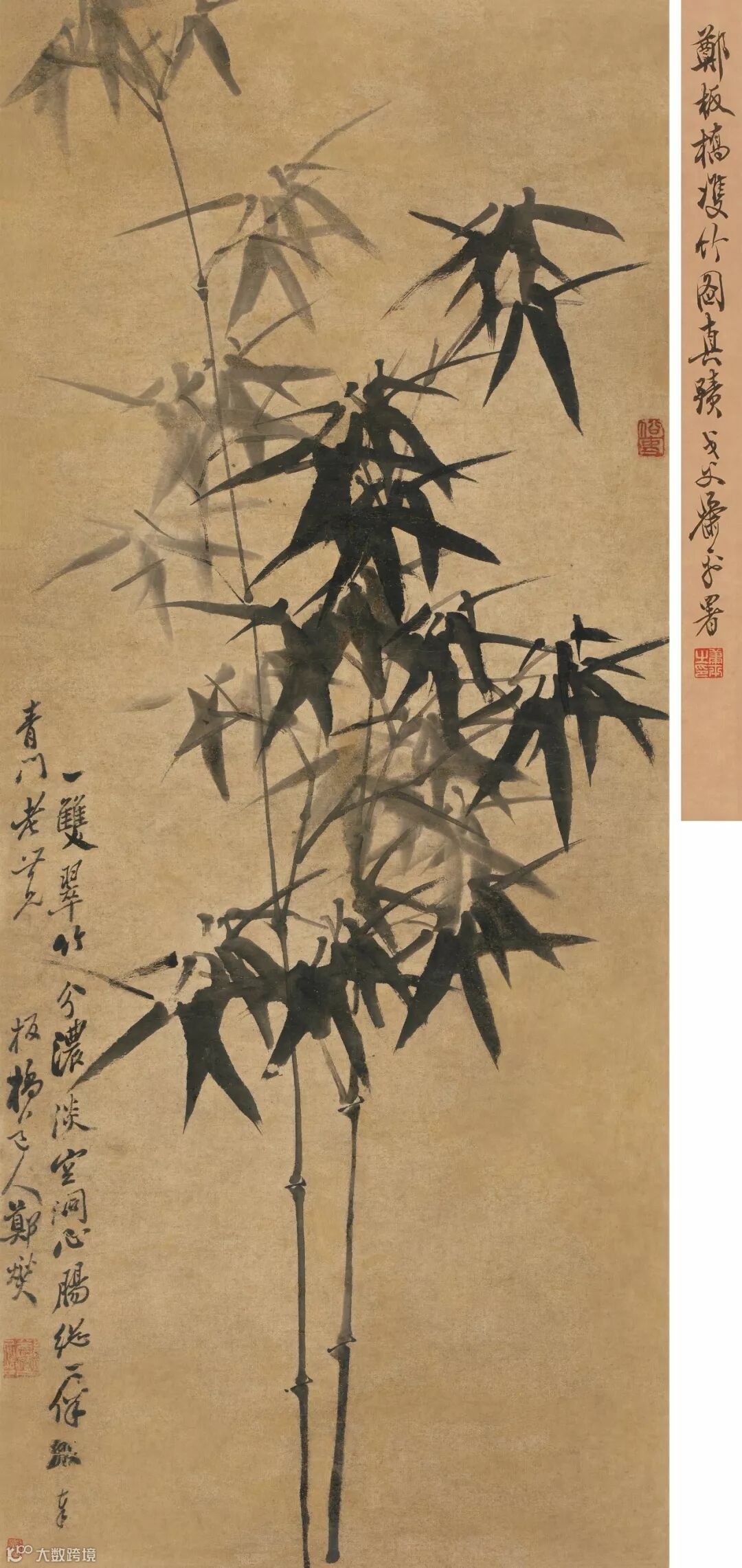 签条:郑板桥双竹图真迹,戈父萧平署。钤印:萧平之印