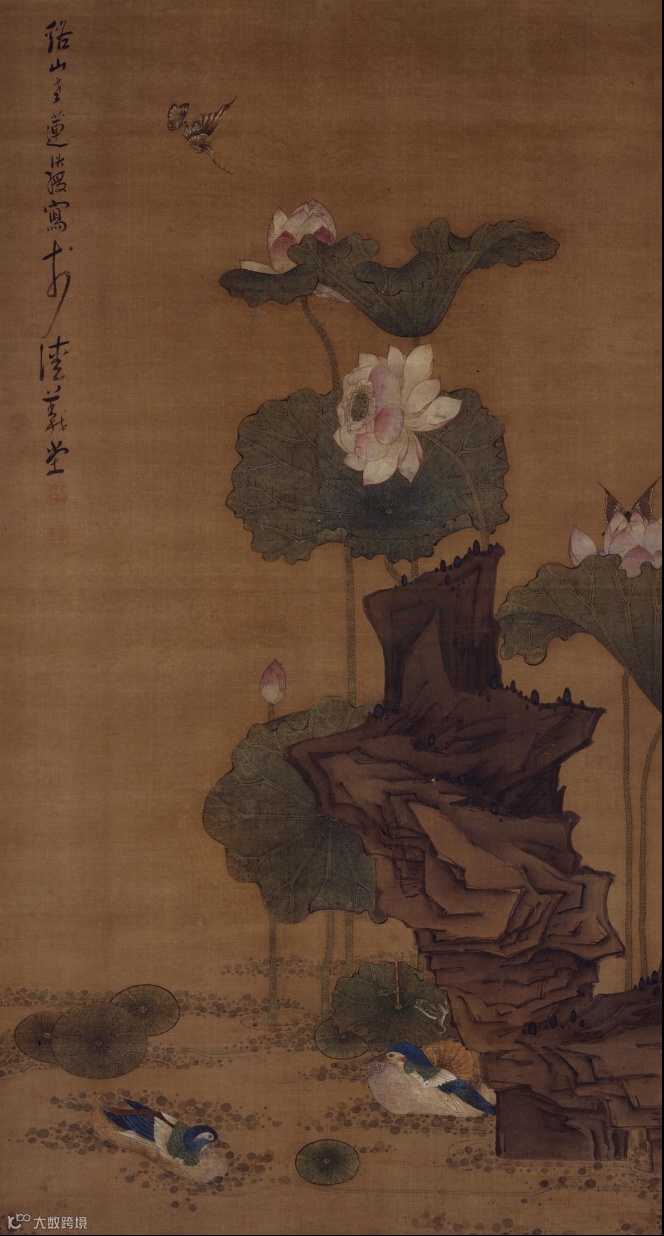清沈铨 《荷塘鸳鸯图》