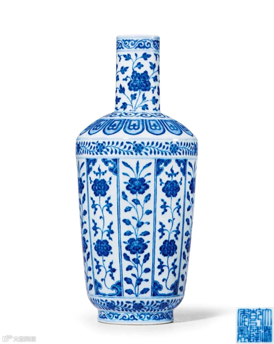 右图:清嘉庆 青花海水云龙纹瓶(台北故宫博物院藏)