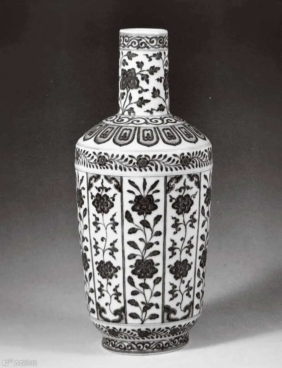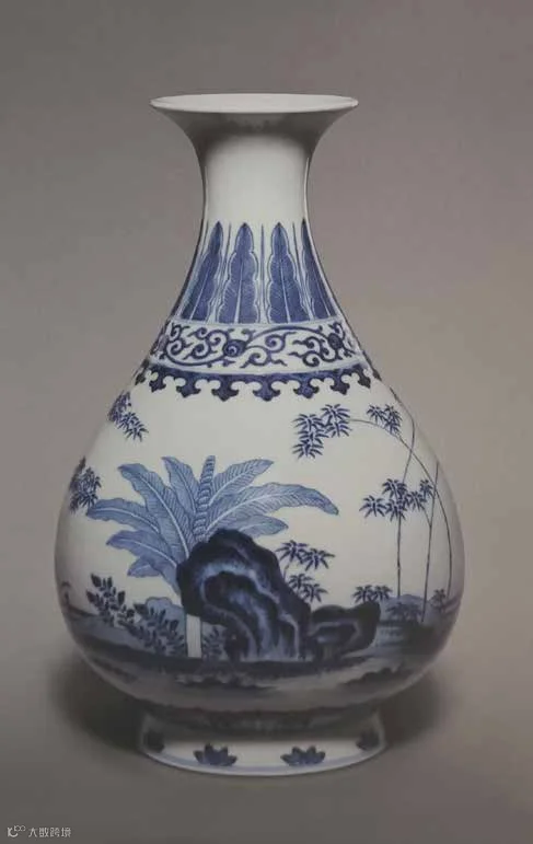 右图:清嘉庆 青花竹石芭蕉图玉壶春瓶(北京故宫博物院藏)