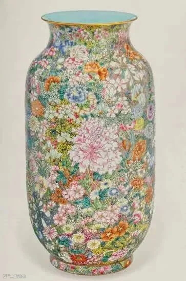右图:纽约佳士得2019年9月13日 编号1134 清嘉庆 粉彩百花不落地灯笼瓶