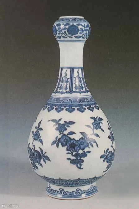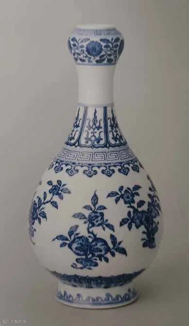 右图:清乾隆 折枝花果纹蒜头瓶(北京故宫博物院瓷)