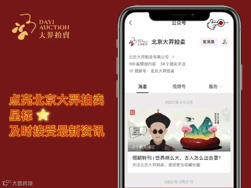 一次拍卖会,有着数不清的故事。有艺术品背后的故事,拍场的故事,也有我们与您的故事。2022年春拍「御用:宫廷瓷器艺术珍品」专场将于北京时间6月26日19:30举槌拍卖。本次拍卖会在预展期间引起多方关注,众多藏家朋友和艺术爱好者纷至沓来,享受这场艺术的盛宴。人们为艺术的魅力所震撼,更对即将举槌的拍卖会充满期待。举槌在即,我们愿各位都能将心头之好收入囊中。