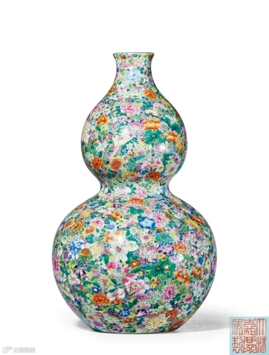 LOT834 清嘉庆 粉彩百花不落地葫芦瓶
