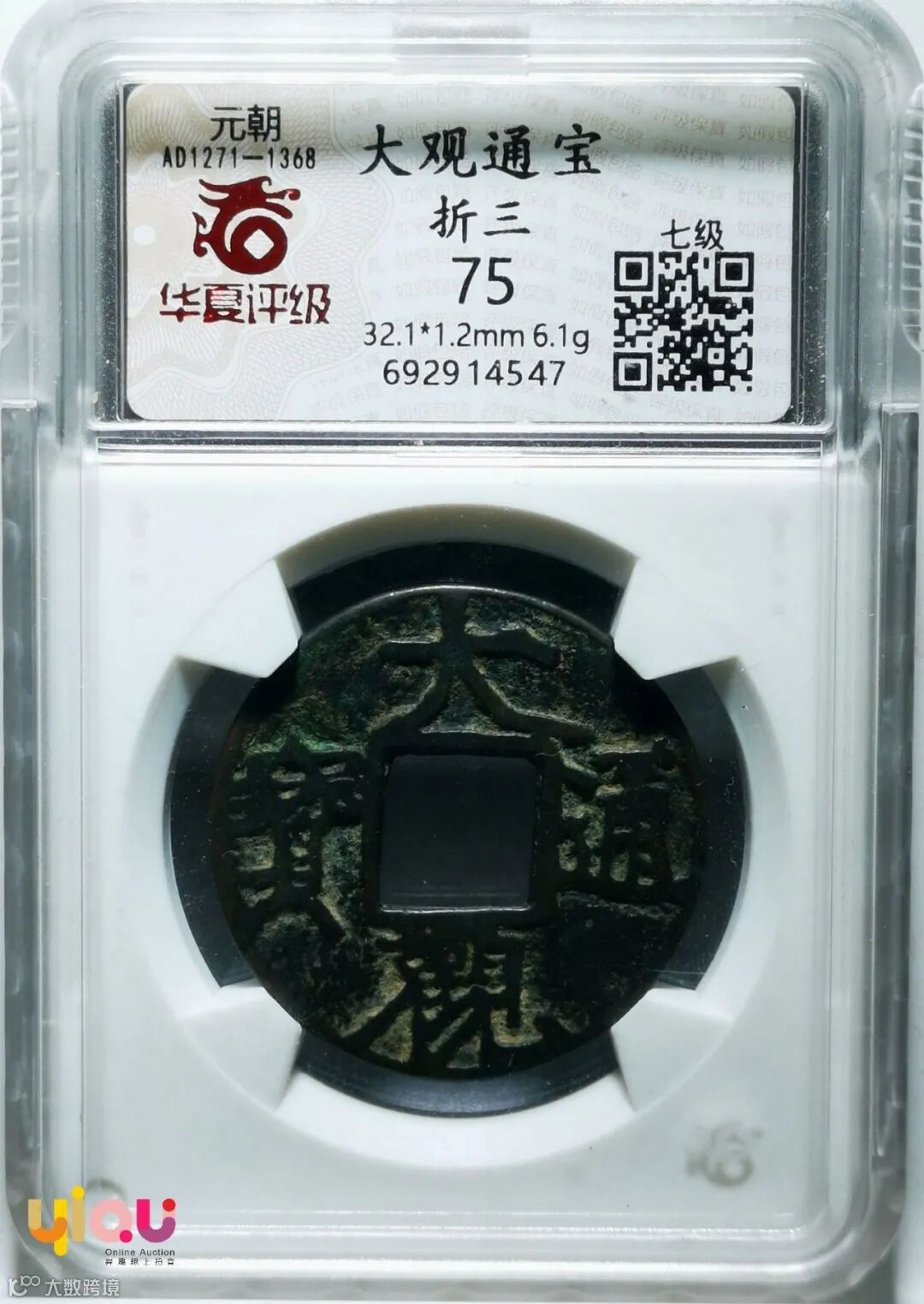 LOT608 元铸大观通宝 折三 华夏评级 75 尺寸:32.1 mm diam.